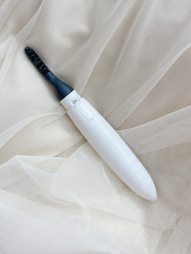 ビューラーで上げたまつ毛を梳かします。