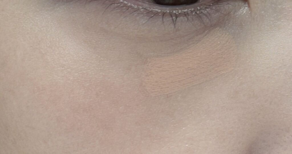 カバーしたい箇所(私は目の下のクマ)に一本線を引くように乗せます。